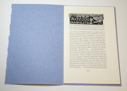 Wayzgoose Pamphlet Number One: spread, with woodcut